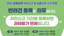전북 정읍시가 반려동물 등록제 정착과 유기동물 발생 예방을 위해 오는 11월 한 달간 집중 단속에 나선다. 현행 동물보호법에 따르면 생후 2개월 이상 반려 목적으로 기르는 개의 소유자는 반드시 동물등록을 해야 한다. 등록 후 반려동물을 잃어버렸을 경우에는 10일 이내, 소유자 변경이나 사망 등 정보 변경이 필요한 경우에는 30일 이내 변경 신고를 완료해야 한다. 이를 지키지 않으면 최대 60만 원 이하의 과태료가 부과된다. 시는 단속에 앞서 시민 부담을 줄이기 위한 동물등록비 지원 사업도 병행 중이다. 관내에서 생후 2개월령 이상 개를 키우는 소유자는 협약 동물병원(마이펫·다나·대한·조은·제이에스)을 방문하면 내장형 동물등록비 3만 원 전액을 지원받을 수 있다. 정읍시는 정읍천, 근린공원 등 주요 반려동물 산책로를 중심으로 현장 단속을 진행할 예정이다. 시 관계자는 “동물등록이나 변경신고를 하지 않은 소유자께서는 단속 전에 협약 병원을 방문해 지원 사업을 통해 꼭 의무를 이행하길 바란다”고 당부했다.